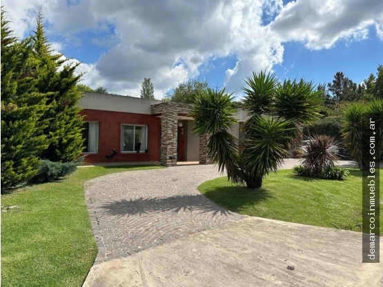 En el exterior, la propiedad ofrece una galería semicubierta con parrilla, mesada y bacha, vinculada a la cochera cubierta con capacidad para dos vehículos. Además, dispone de lavadero independiente, baño exterior, despensa y espacio de guardado. El jardín se encuentra totalmente parquizado, rodeado de arboleda consolidada que aporta privacidad, e incluye una piscina de 8x4 metros con borde térmico, solárium, sistema de filtrado y bomba, junto a un hidromasaje exterior de 2x2 metros.