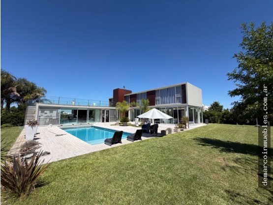 Imponente propiedad de diseño moderno, desarrollada en tres plantas, íntegramente vidriada, con vistas abiertas al jardín y una integración constante entre interior y exterior. Una casa pensada para disfrutar del confort, la amplitud y la vida social, en uno de los barrios más exclusivos de la zona.